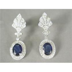 A pair of sapphire and diamond cluster drop earrings, set in 18ct white gold, the pierced mounts...