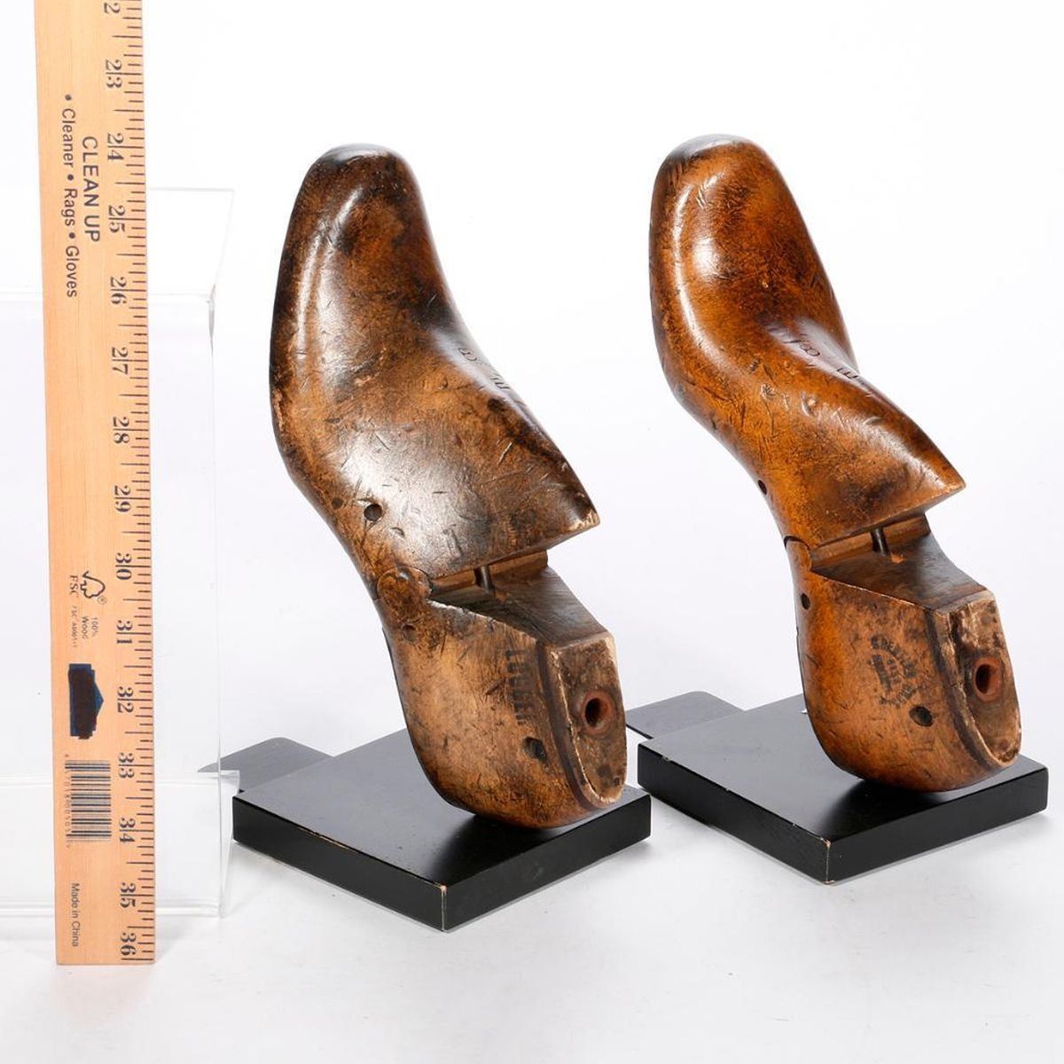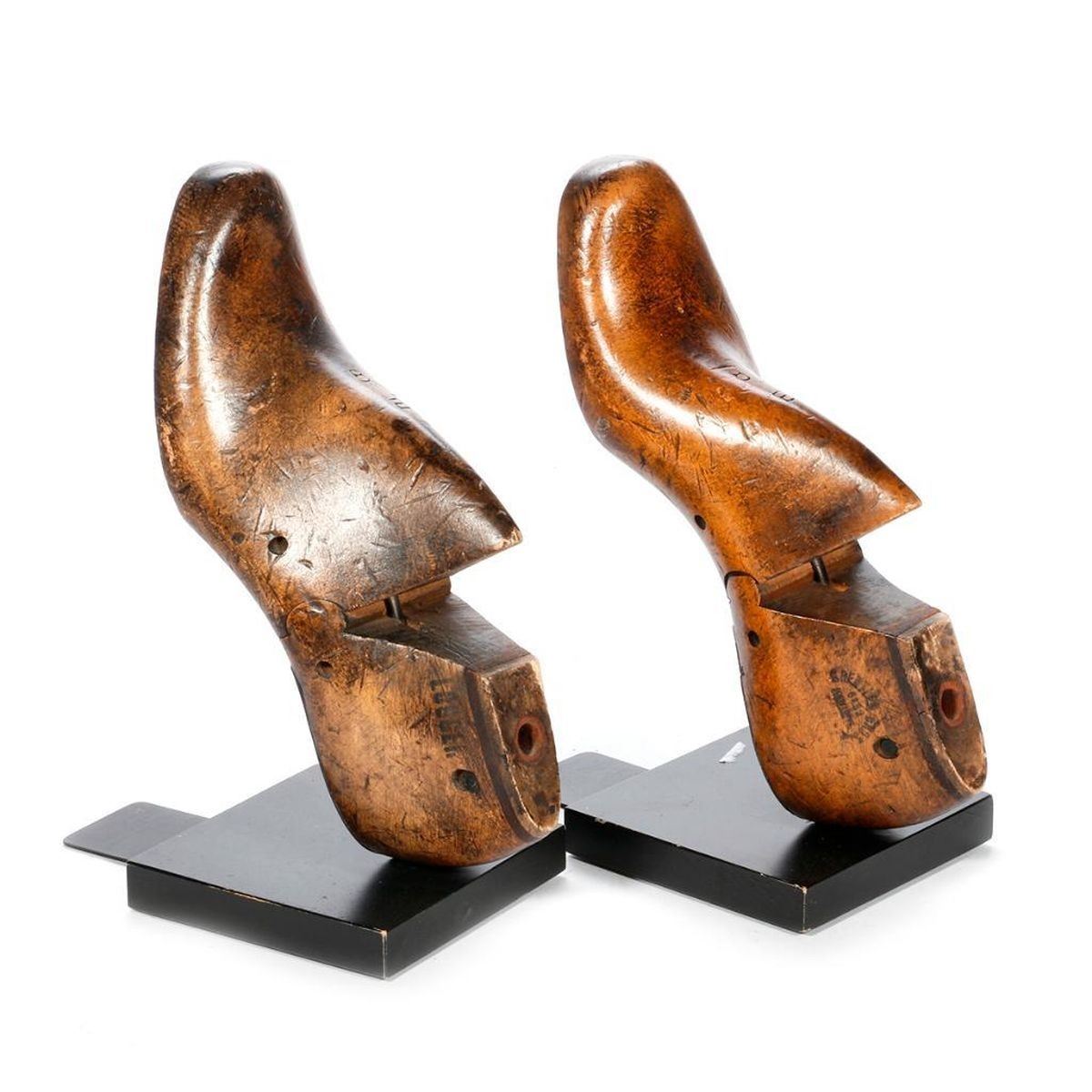 A pair of 19th century shoe forms made into bookends measuring 10 1/2 inches high x 9 wide x 5 deep.