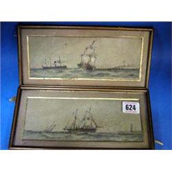 A pair of small-framed 19thC watercolours of shipping scenes.