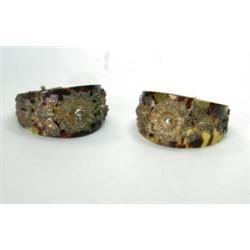 A pair of "tortoiseshell" bracelets applied with filigree decoration representing flowers and insec.