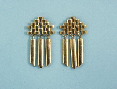 A pair of unusual 1940's 18 kt. gold ear pendants.