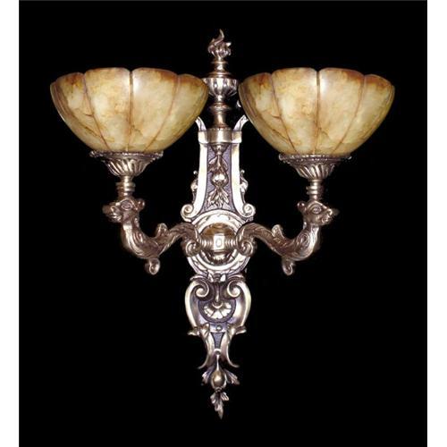 The artwork of the bronze of this pair of bronze and alabaster chandelier made this item unique.
