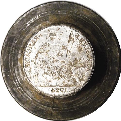 <B>A pair of working dies for the 1924A French Indo China 20 Cents,</B></I> KM17.1, some pitting and die cracking. Rare.