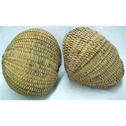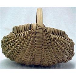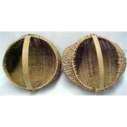 A pair of woven splint buttocks baskets, C. shaped handles, early 20th C., each measures approximately 12" high x 14" x 12 1/2" Estimate 150/300