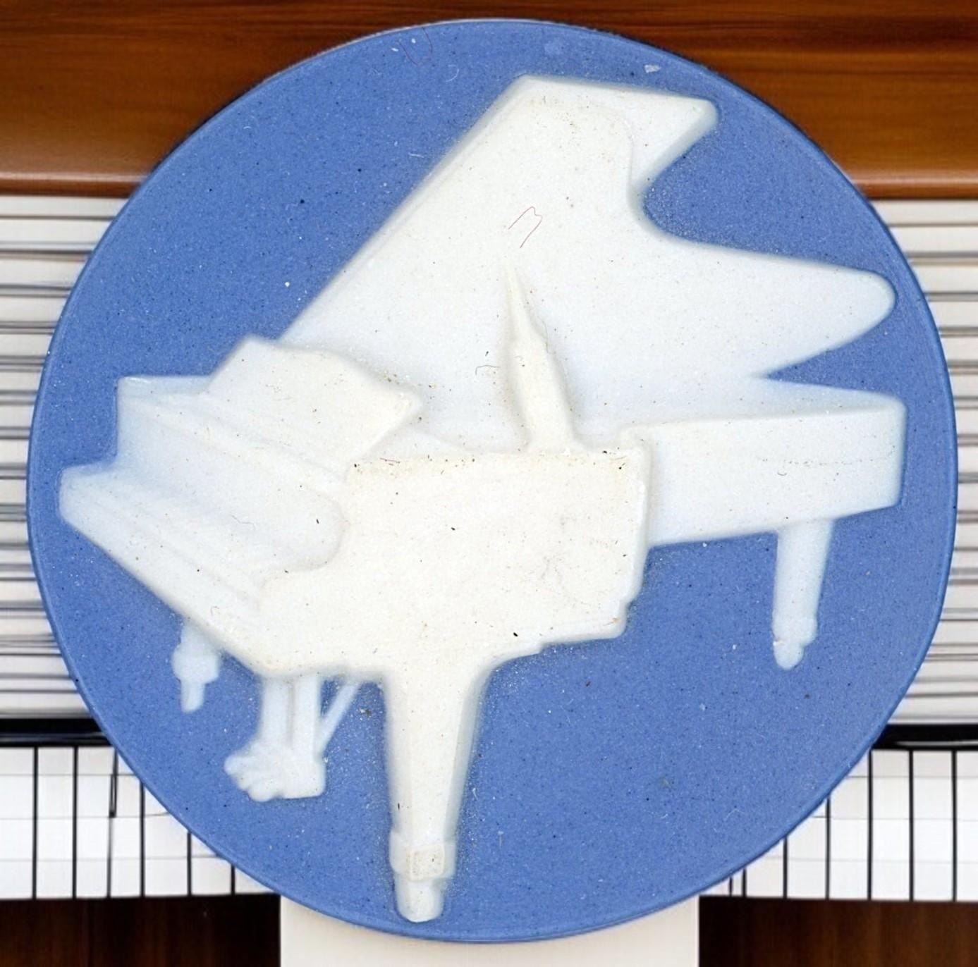 12 S/M/L 19th/20th C. examples relating to music and instruments. This partial card includes a watch crystal of a girl at the Piano, a pictorial of bagpipes, a metal square musical note, people with instruments. The lot includes metals, Jasperware, and more.