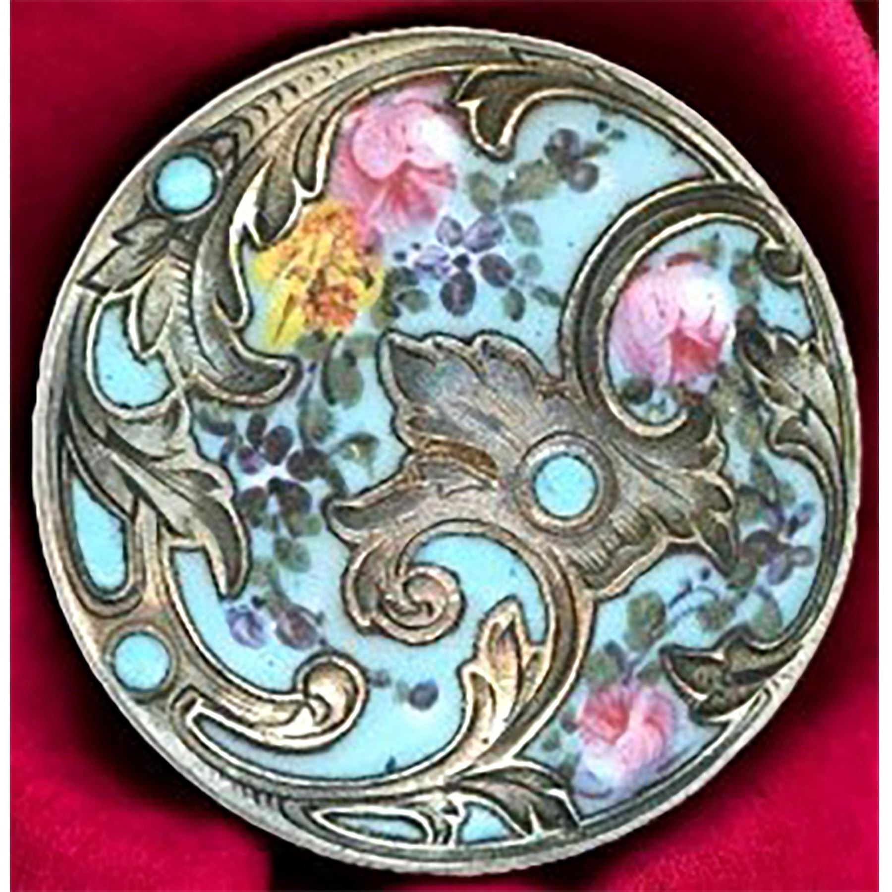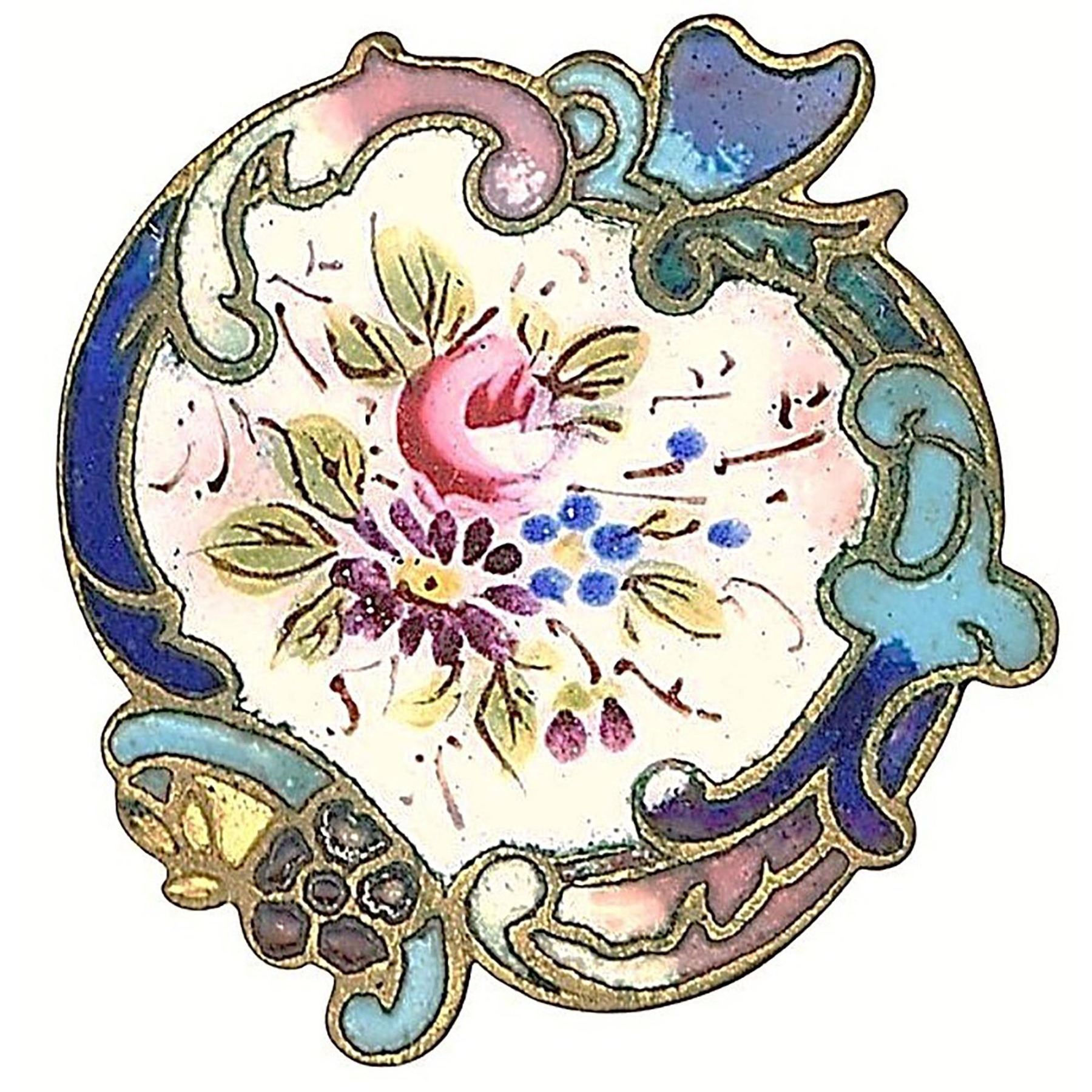Here is a partial card including a hand pained colorful Dragon from China, a beautiful turquoise and pink roses on silver rococo design, several nice pictorial examples, an emaux peints and Champleve shape and more.