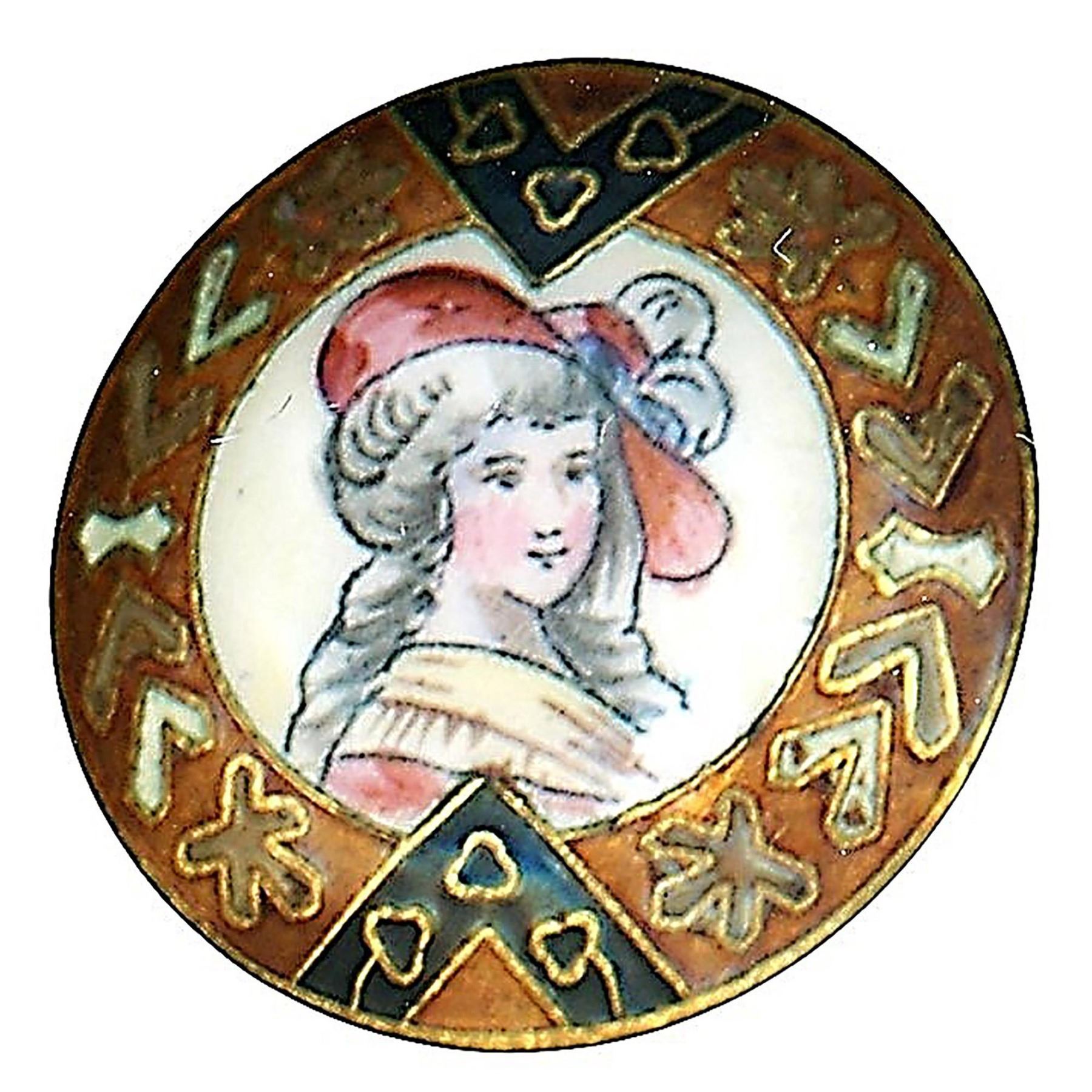 27 S/M/L 19th-20th century assorted material examples. This nice card of heads includes a nice colorful porcelain in metal with paste border, matter finish enamel, Bakelite, metals, a colorful realistic ceramic clown head, natural material, bone in wood and more. Great selection.