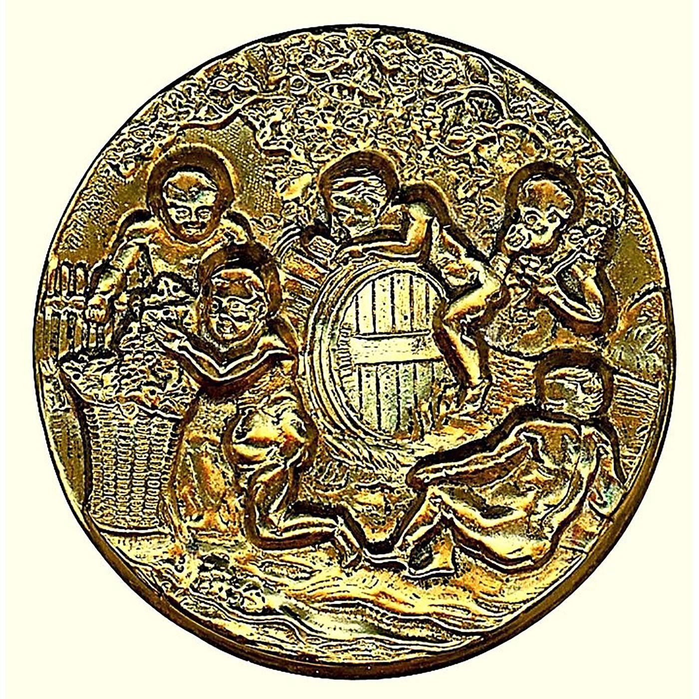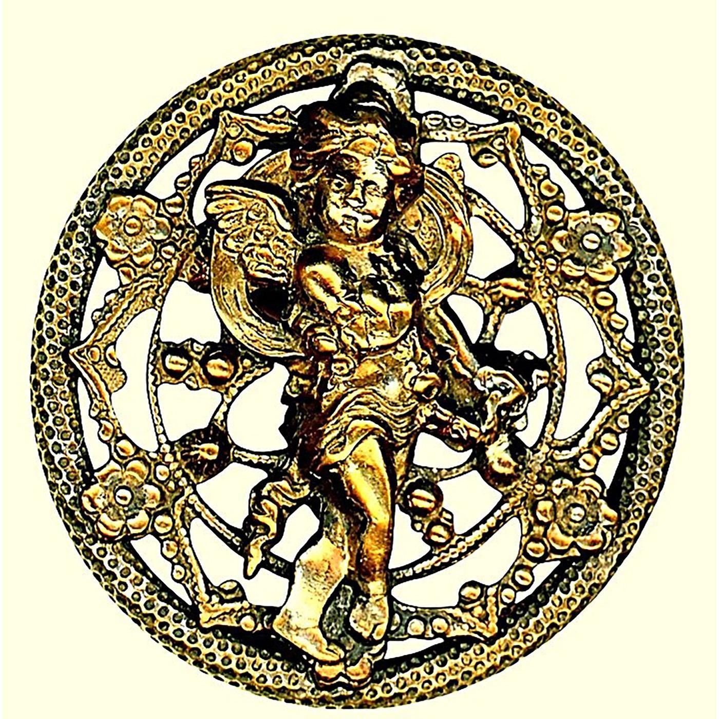 12 Large 19th-20th century assorted metal buttons. This lot includes a large copper button commemorating the Queen of England, a nice pierced openwork cherub, fleur de lis and cut steel, and many other nice picture buttons.