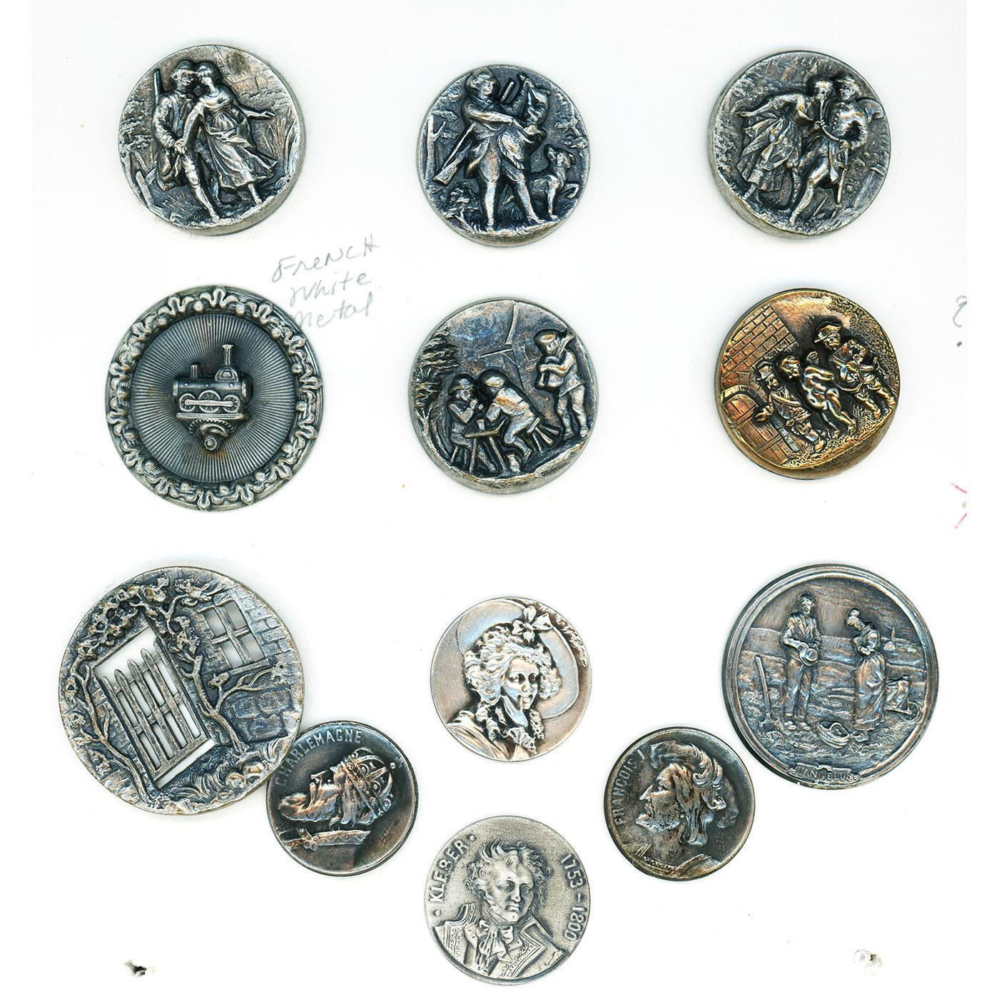 12 Medium /Large 19th-20th century assorted pictorial examples. This card includes buttons from the late 19th to the mid 20th centuries and includes a nice variety of pictorials.