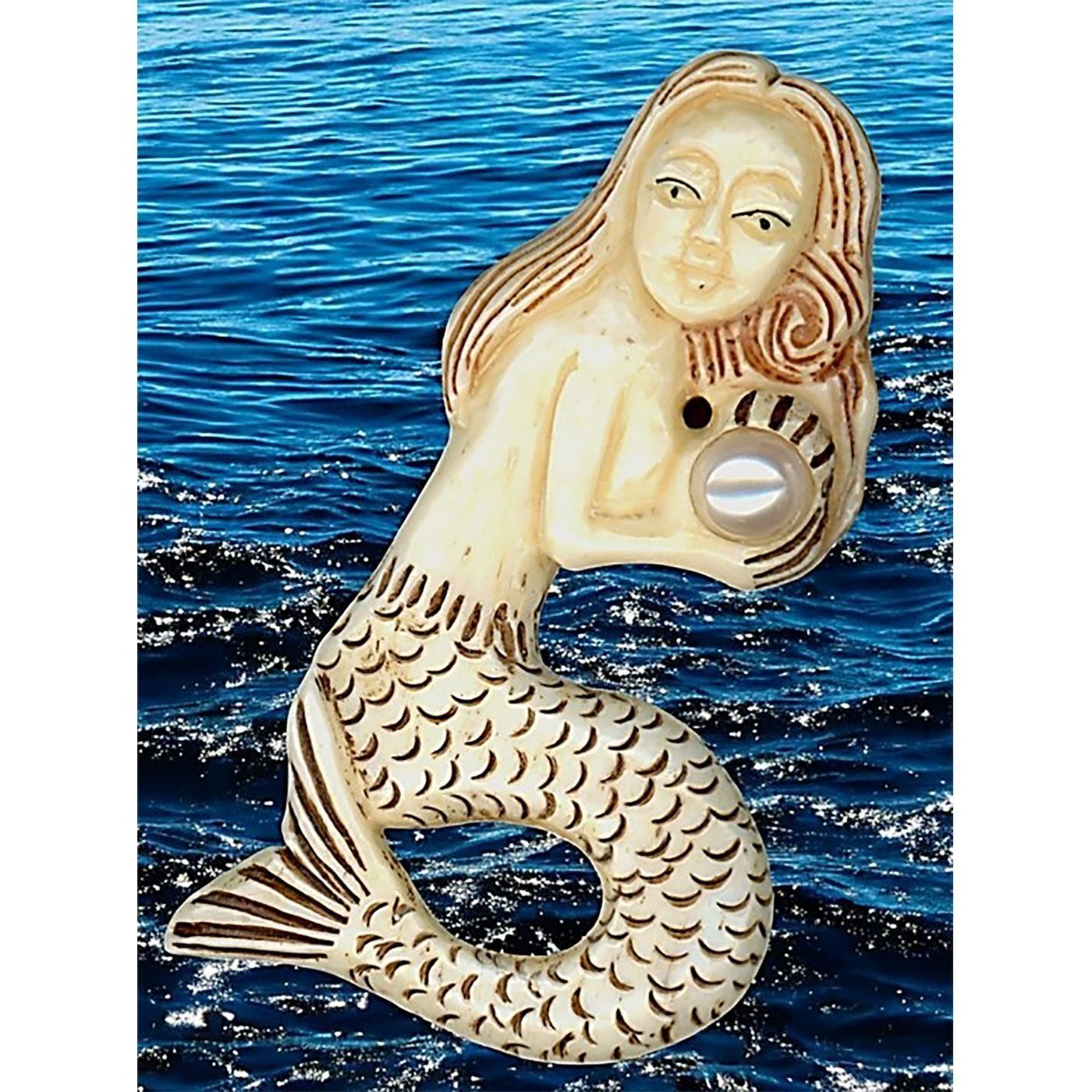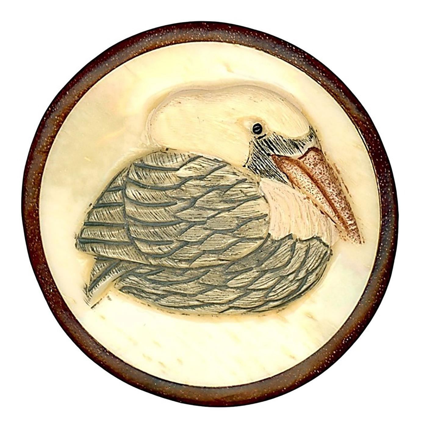 9 Large 20th-21st century assorted pictorial examples. This partial card includes a nice tooled leather Owl. A large realistic carved bone Mermaid, a carved bone in wood Pelican in relief, a cool colorful pottery realistic fish and more.