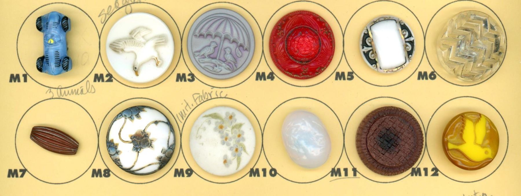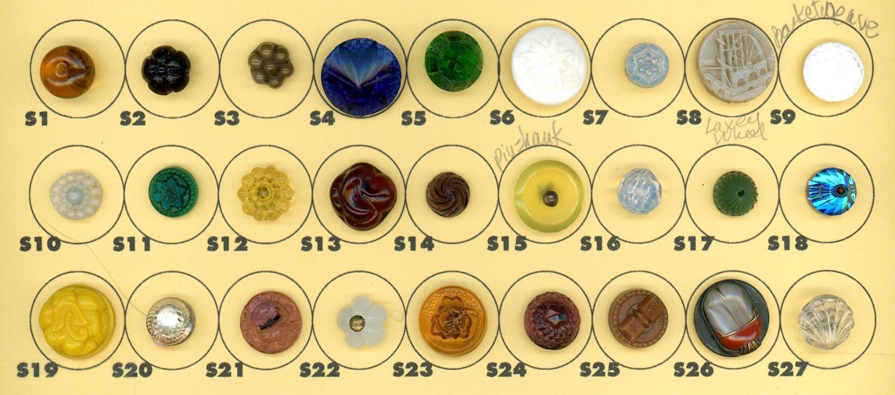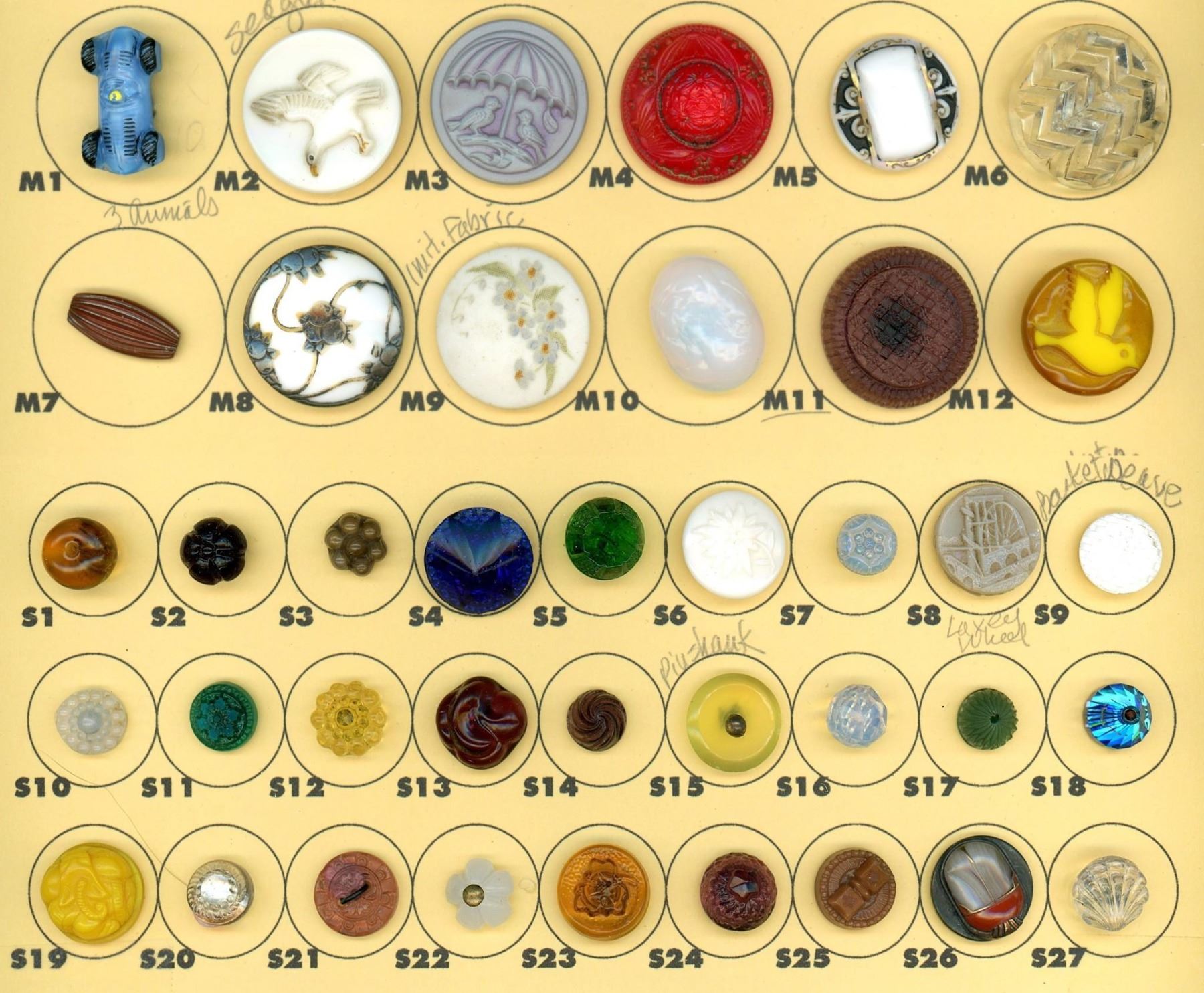 39 Small/Medium 19th-20th century examples. Nikki Deal compiled an extensive collection of glass buttons. This colorful lot of mediums and smalls includes a nice variety including Victorian, Faux fabric, pictorials, swirlbacks and much more.