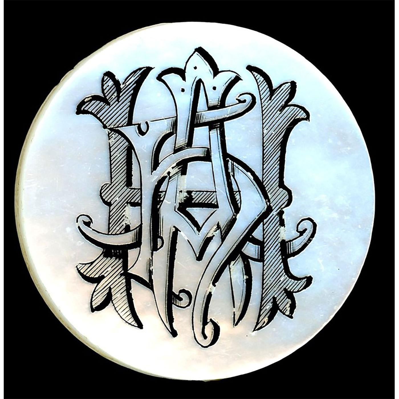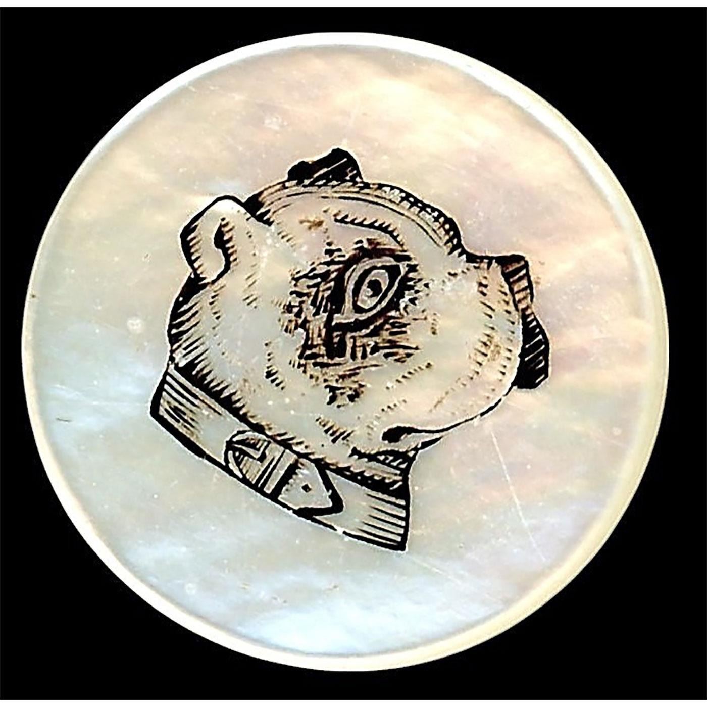 15 S/M/L 19th century shell including pictorials. Here is a partial card from the collection of the late Shirley Case of Missouri of pearl buttons including carved, smokey, encrusted, engraved and more. Nice selection. Check out the fantastic engraved and pigmented bulldog, the wonderful engraved and pigmented Coaching pearl style big pearl and so much more.