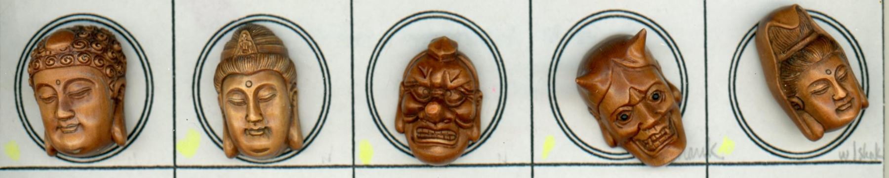 5 Large 21st century hand carved examples. Here is a nice small selection of Boxwood buttons from China in the early 2000's. These are quite desirable among collectors and have lots of competition uses for them.