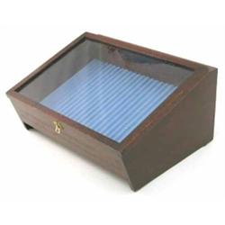 A pen collectors glazed table cabinet, with blue lined partitioned interior, 17ins...