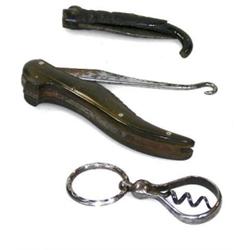 A penknife, a button hook and a corkscrew, the former folding into a deer horn, the button hook folding into sides modelled as a Lady's shoe and scent bottle cork screw folding into a tear shaped guard supported on a bright cut ring, 5.5cm long (3) £40-60