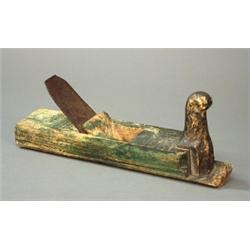 wood, 18 th / 19 th century, with carved decor and original painting, length 28 cm; wear