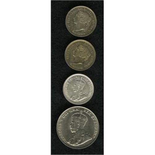 <B>A quartet of mixed 5 Cents consisting of:</B></I> 1891, XF-AU with nice toning; 1893, nicely toned AU; 1912, AU, possibly lightly cleaned; and a 1924, softly struck XF-AU. <B>A sold as is, no return lot.</B></I>