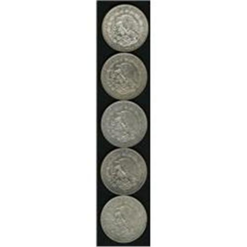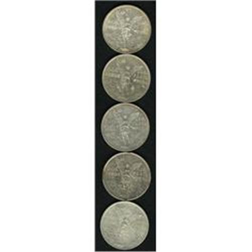 <B>A quintet of Dos Pesos 1921 including:</B></I> (2) XF (one lightly cleaned, and (3) AU, one with a couple of small rim bumps. <B>A sold as is, no return lot.</B></I>