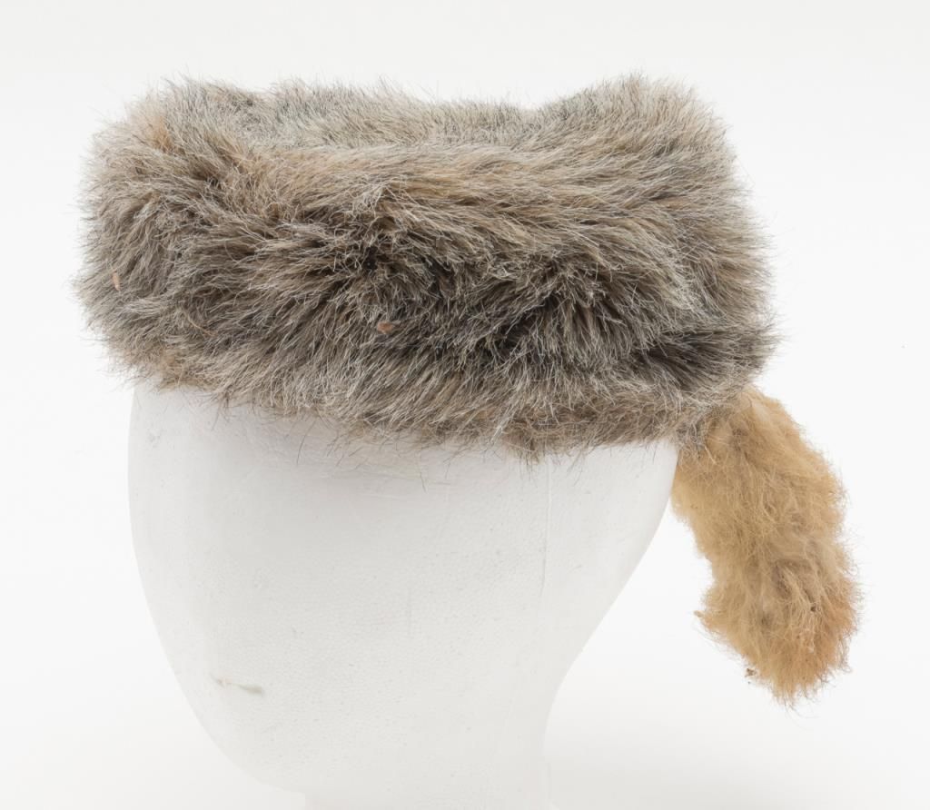 A raccoon skin cap; type likely sold at Disneyland in the Frontierland portion of the park; for those of you old enough to remember Fess Parker and the Davey Crockett series on early TV, this is one you have to have for your nostalgiacollection. Est.: $50-$75.