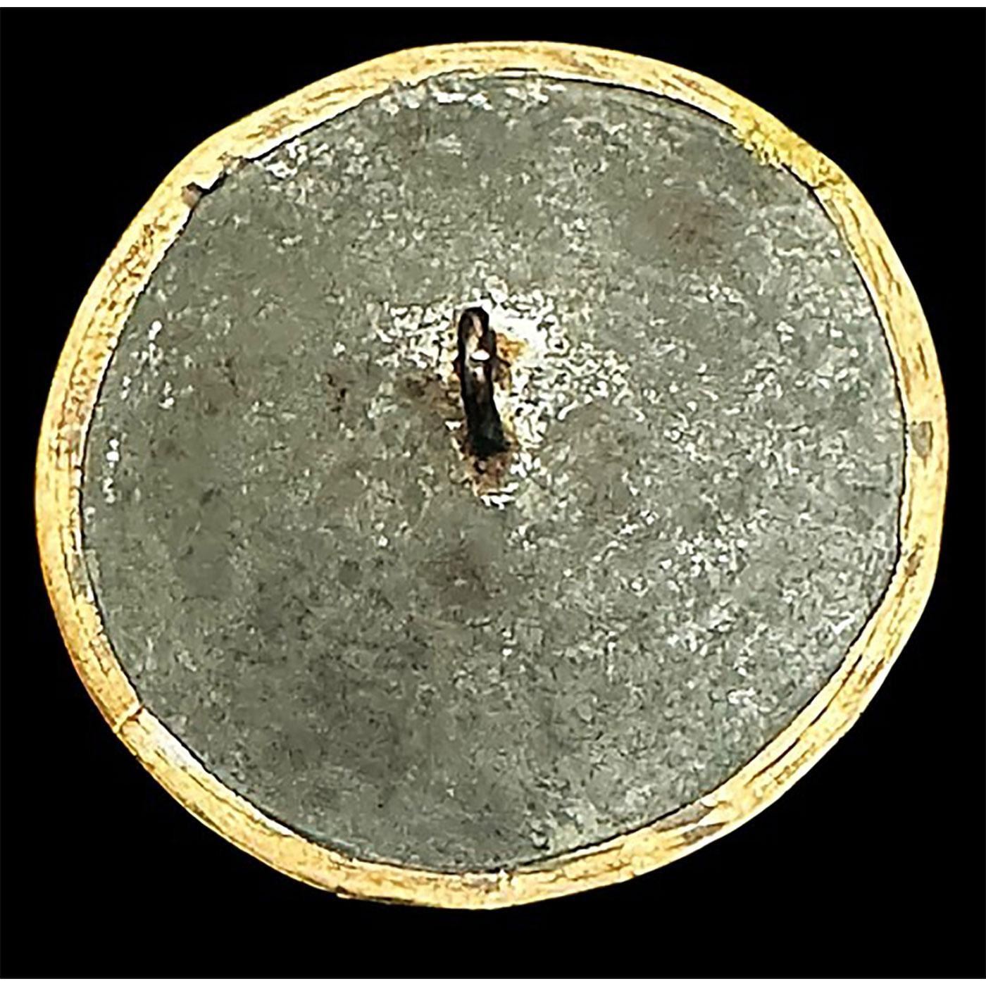 1 Large 18th century silver under glass pictorial button. If you are interested in 18th century buttons and want to add a very fine and unusual example to your collection of growing and unusual 18th century buttons, perhaps you should consider this hard to find rare example from that period. The mourning design under the glass is embossed silver and has retained its vibrant silver finish, Rimmed in cooper and tin back the button is in very nice original condition. A great find.