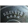 1 Large RARE 19th century French Calendar example. Here is a rare and cool stud button showing a calendar. The words and numbers on the paper are in Frenc and when you turn the little brass knobs it turns the wheel of dates underneath the top layer of the stud button. Backmarked and in great condition.