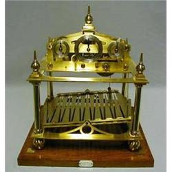 A reproduction Rolling Ball Clock constructed by Joseph and Ida Platt of Cannon Craft, Brailsford, Derby following the patent of William Congreave, limited edition of fifty, housed in a glazed rosewood cabinet and in working order, overall dimension of cabinet, width 38cm x height 43cm, 15 inches x 17 inches. See Illustration £2000-3000