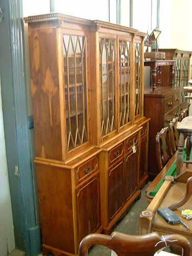 A reproduction yew breakfront bookcase, H 198cms W 192cms £100-150