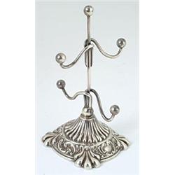 A ring tree on fluted and embossed shaped-square base, Birmingham 1904 by Hilliard and Thomason, 9cm high (3.5 in)