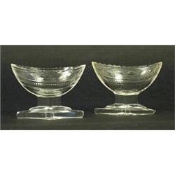 glas, empire style, probably England, around year 1800, boat shaped, height 8 cm; chippings