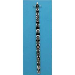 A sapphire and diamond bracelet, set 12 graduated rectangular-cut sapphires spaced by 12 smaller...
