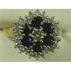 A sapphire and diamond cluster ring, set in 18ct gold, size O 1/2