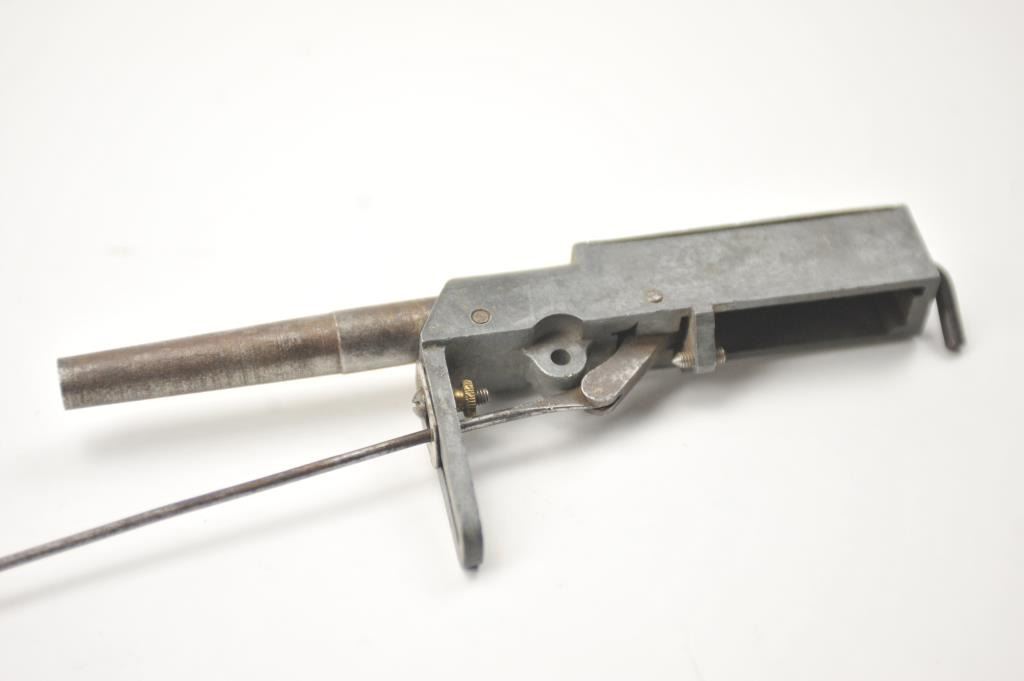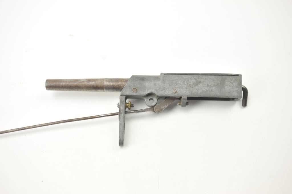 A scarce Taylor’s “Fur Getter” trap gun. An early example. The iron top plate cast in relief “Pat. June-2-14, F.C. Taylor Co. St. Louis”. Most of these oddities are in brass and marked on the side. Mechanism not tested. An interesting American oddity. Est.: $300-$600