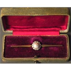 18-carat gold, with 12 brilliants and a pearl