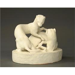 patinated plaster, signed Arvid Knöppel 1892-1970, playing weasels, height 25 cm, length 25 cm