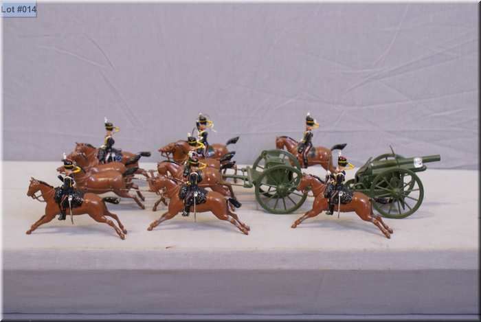 A selection of Britain's metal soldiers including gun crew with horses and cannon being pulled by figures