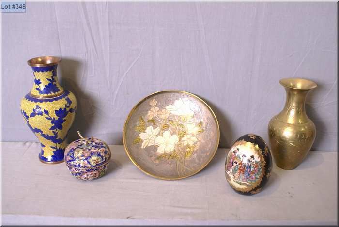 A selection of collectibles including brass, trinket box, and a Satsuma egg etc.