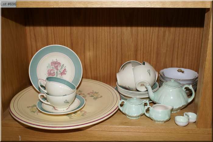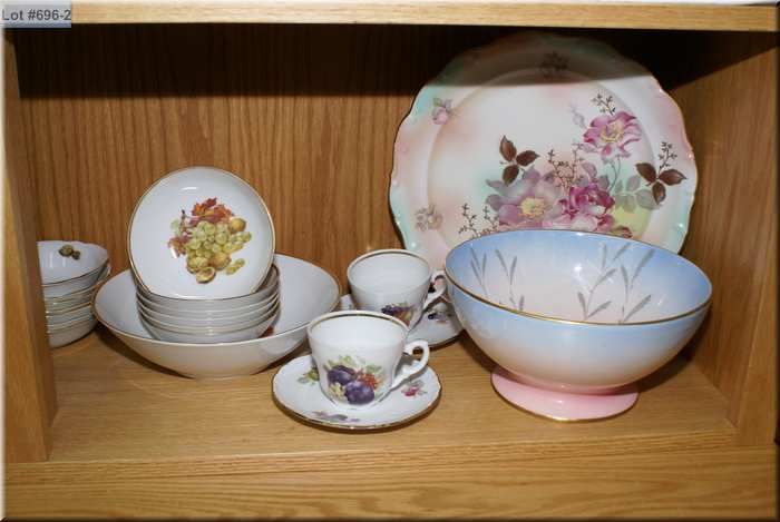 A selection of collectibles including six Susie Cooper cups and saucers, large Royal Winton dish, platter, fruit motif dessert set, miniature tea set etc.