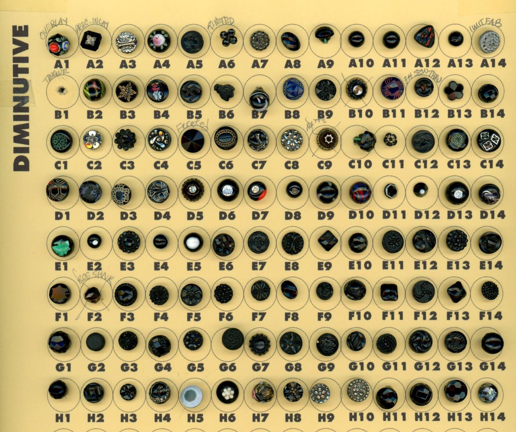 111 Diminutive 19th century assorted technique examples. For those of you who love these tiny buttons known as Diminutive size buttons comes this selection from Nikki deal of a large variety of techniques specialized to black glass. An amazing selection.