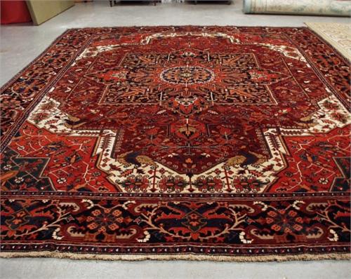 A semi-antique Persian Heriz carpet. Approx. size: 14'6" x 11'9".