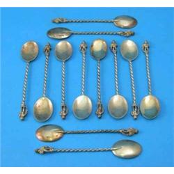 A set of 12 Victorian silver gilt teaspoons, each finial modelled as putti holding a serpent on spiral fruited stems, London 1856 £50-80
