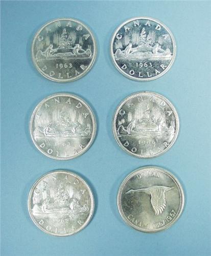 A set of 199 Canadian silver dollar coins from 1960-1966 with five special coins demarking 100 years of confederation. Most are uncirculated.