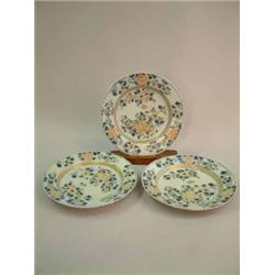 A set of 3 Delft polychrome plates, with floral decoration, 9ins £70-100