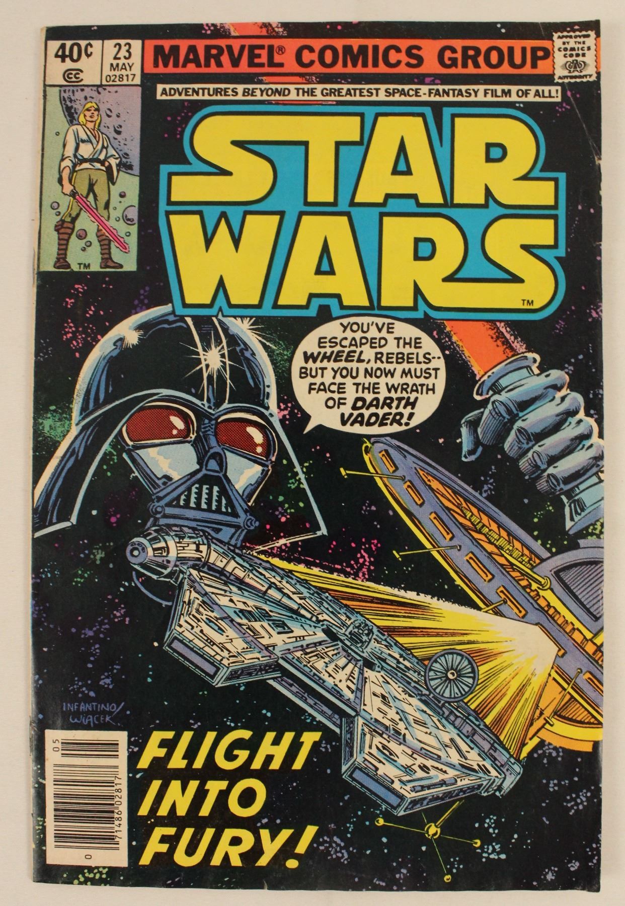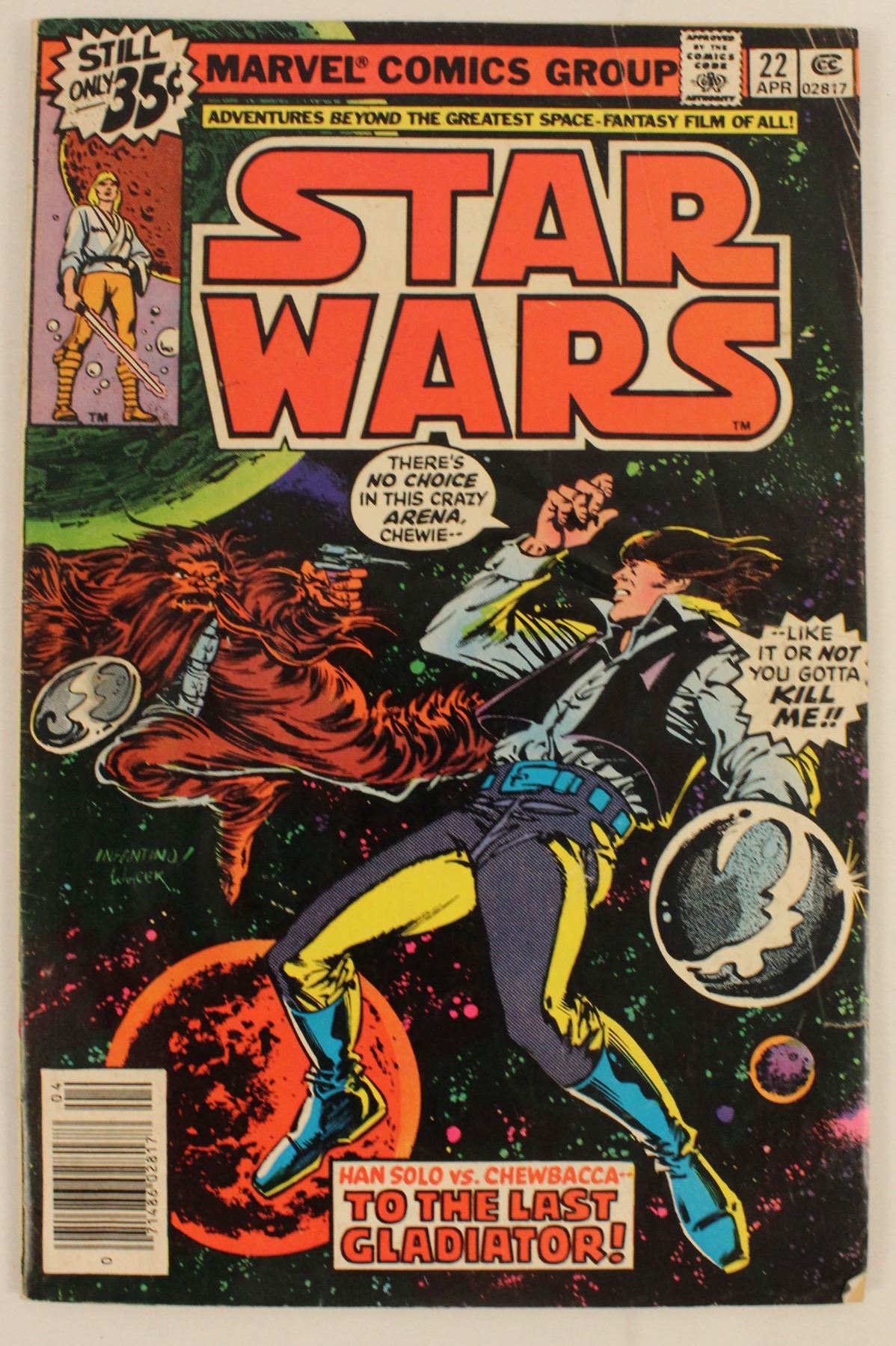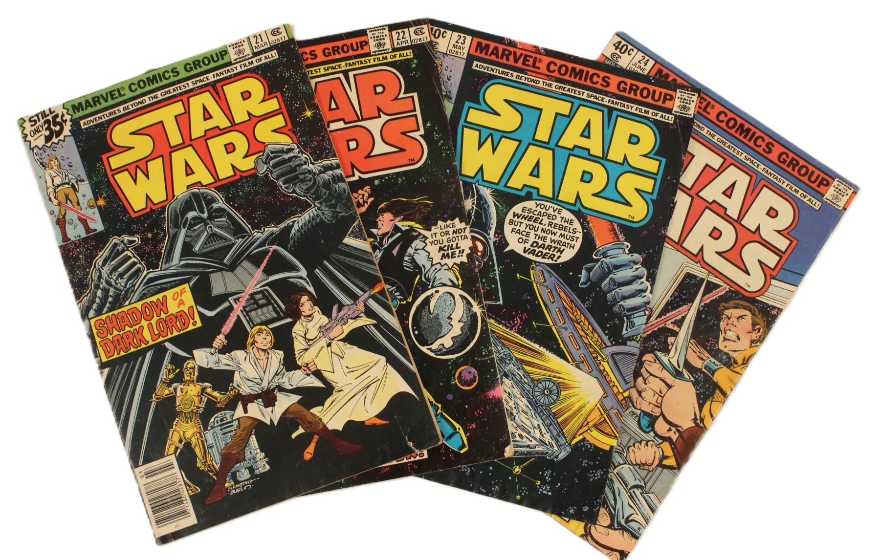(Marvel Comic Group, 1978 - 1979) Marvel Comics Group Star Wars Volume 1, Issues 21 - 24. Telling the Adventures Beyond The Greatest Space-Fantasy Film of All one comic at a time. Comics show edge wear, and the occassional minor tear to the cover due to age and use.