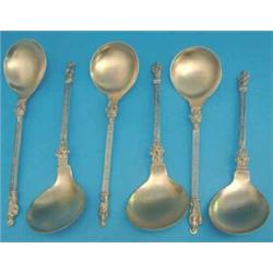 A set of 6 17th century style parcel gilt spoons with apostle finials....
