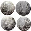 4 Large early 20th century transfer ship scene examples. This group includes masted sailing ships in black and gray tones on slightly domed porcelain. Nice examples.