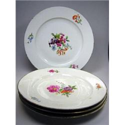 A set of four Marcolini Meissen plates, each painted with central bunch of flowers and three sprigs.