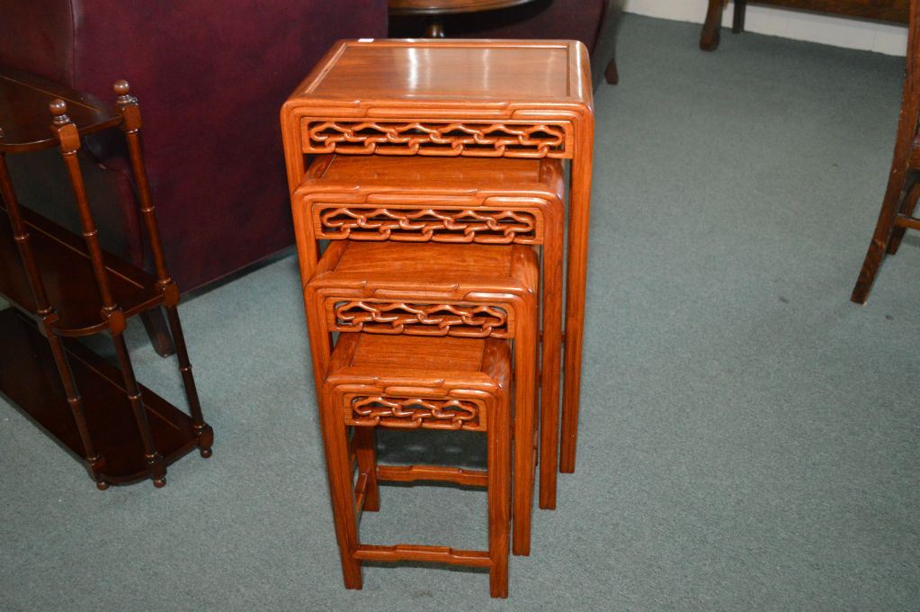 A set of four Oriental motif nesting tables