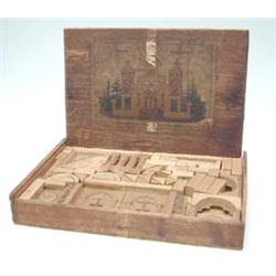A set of pine 'French Architecture' building blocks, in pine box, circa 1910 £30-40...
