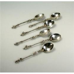 A set of six Dutch silver apostle teaspoons, import marked for London 1890, with twist stems and cast figural terminals, 4oz (6) £50-80