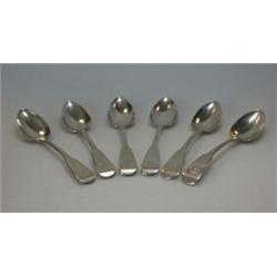 A set of six George III silver fiddle pattern teaspoons, maker WS, London 1778, engraved "A", 13.5c.
